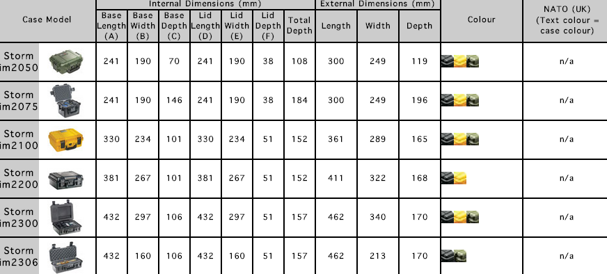 V nabídce kufrů Peli Storm™ najdete nejen širokou nabídku rozměrů, ale také barev.
